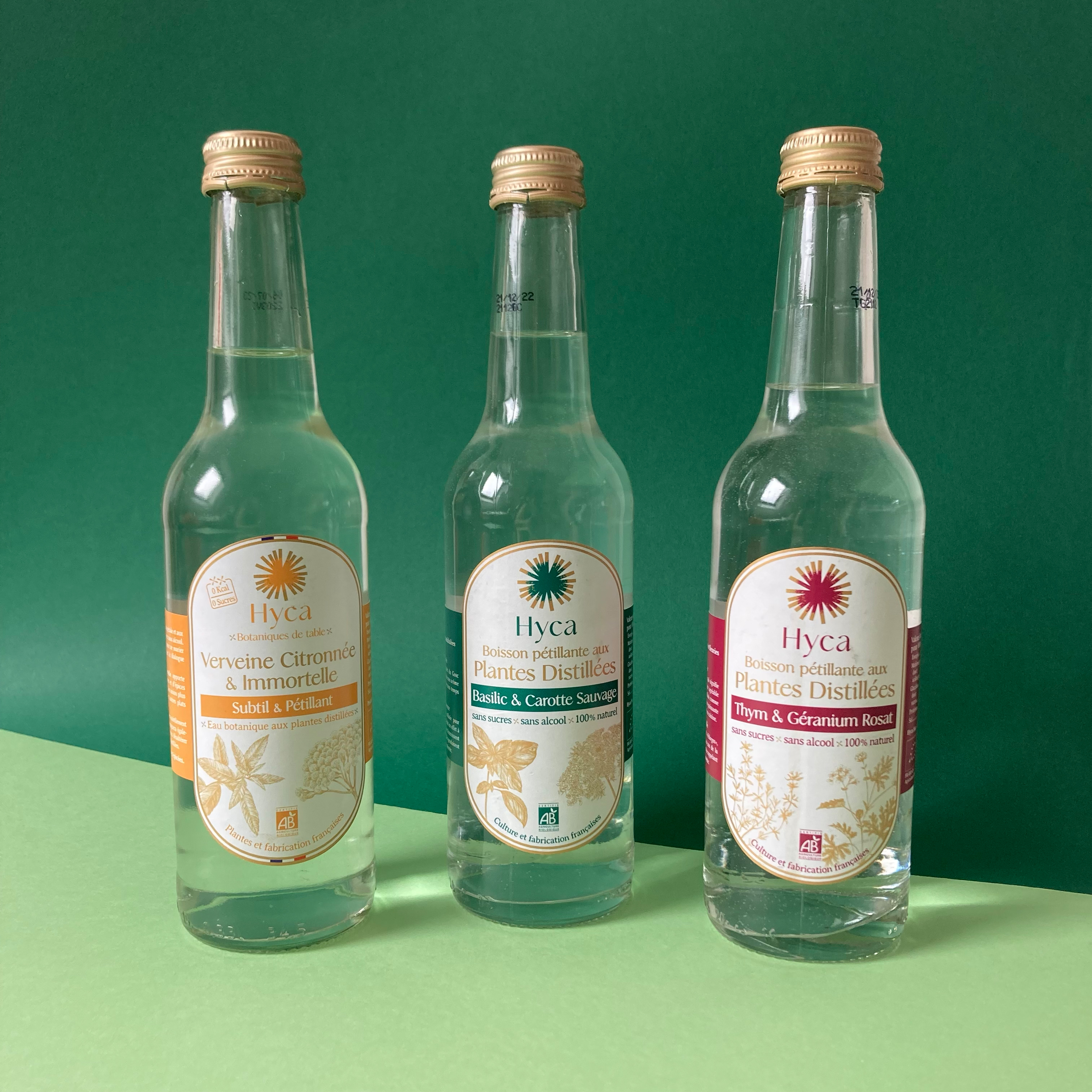 Branding and illustration for Hyca. Hyca is a drink made with plants and crafted in Strasbourg.. Printing by Europrocess Strasbourg.
